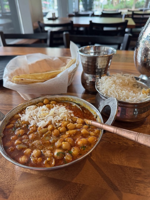 I then wandered the nearly empty, damp streets, looking for lunch. My first attempt, a Lebanese place, was closed on Mondays and also closed after 2, as it only serves lunch. I found an Indian place and had a vegetarian meal; it is Portland, after all, and I nearly choked on the mild version of chickpeas and spices. Rice and naan helped, and soon, I was burned in and could eat my lunch. It would be the most dangerous thing I faced in Portland today, except for the ICE officers.