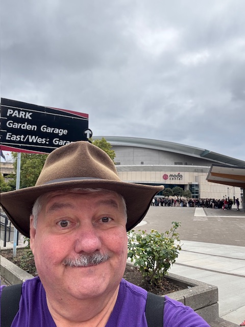 There are many folks here, and I learn that Sleep Token, a hard-to-qualify band, is playing today, and a goth-like fan base is here in a long line. This is the merch line I am told. This is where official band T-shirts and other expensive items are available for purchase. I did not remember the band name, found them on my phone, and played some. Yes, I have heard them on KINK.FM and liked them.