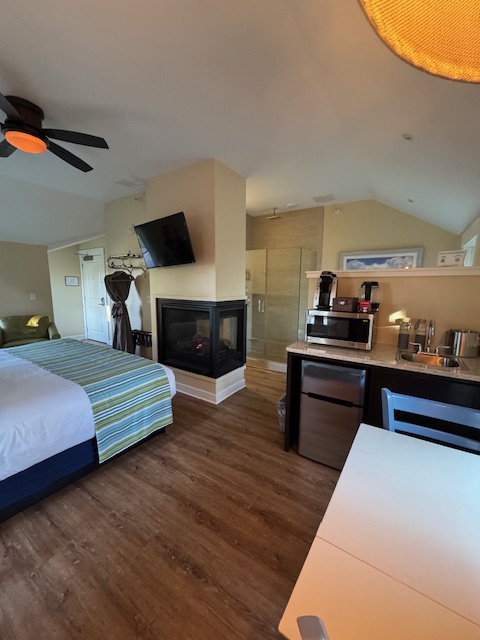 We returned to the room, turned on the gas fireplace, and had a nice sleep.