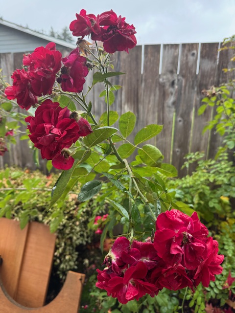 My indominable Japan-style roses. Even in the shade and the rain, they are happy.