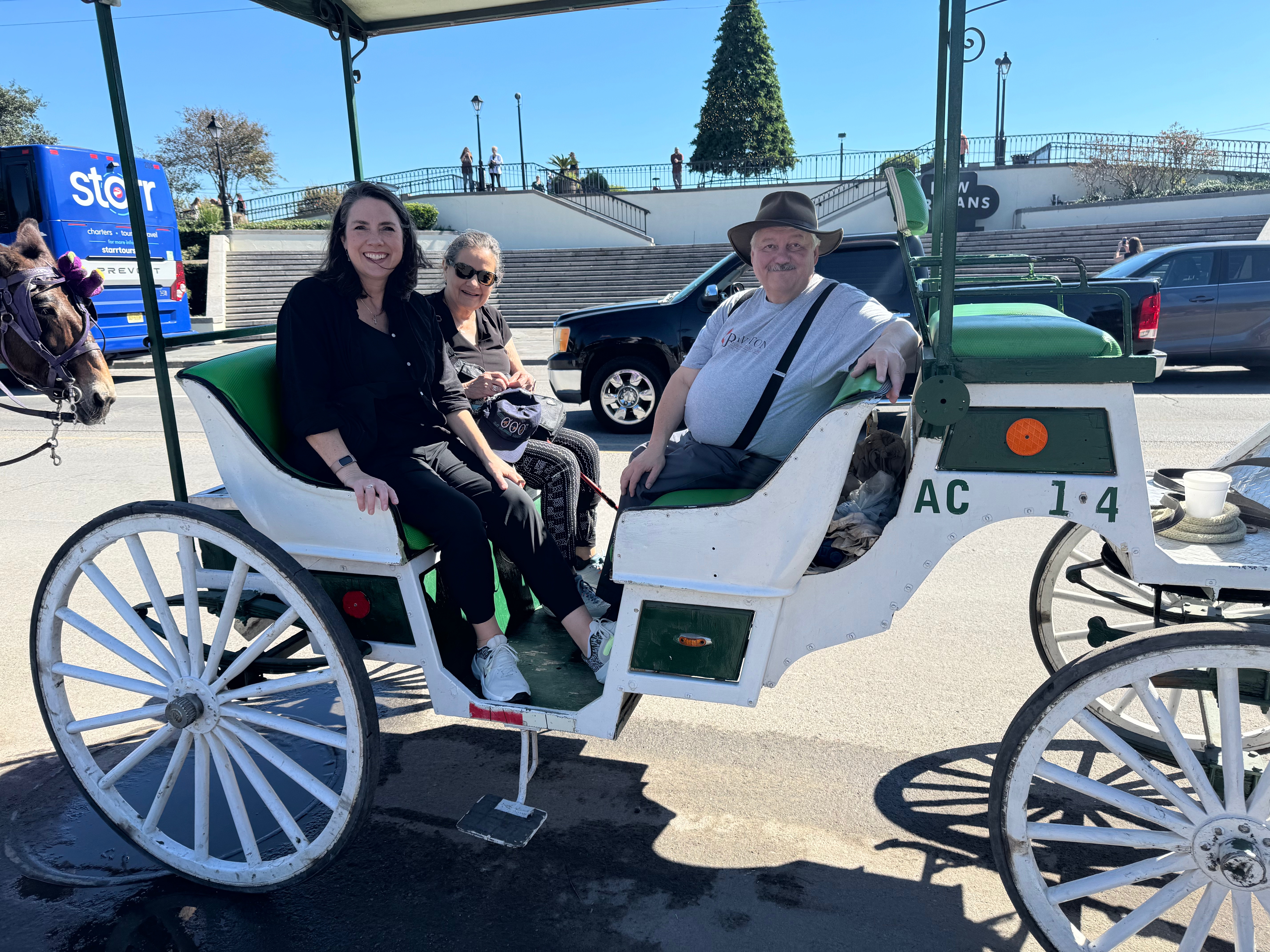 I met Dondrea and Donna, ready to start the next adventure, and we headed to French Toast in the quarter. We walked for about five minutes, and there was no line when we arrived. But they were busy inside, and we took a table outside. Soon, we ordered classic breakfasts (with grits) for Dondrea and me, but Donna gave the eggs and salmon a spin. Lots of coffee marked that we were in a two-hour time difference. Little birds kept landing, and some even chirped to beg for food. Yes, I was panhandled by chickadees!