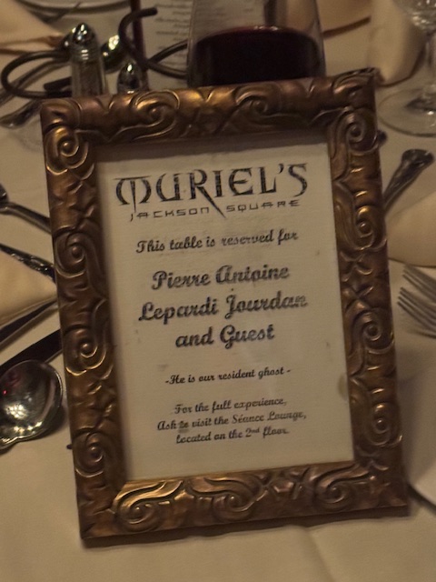 We then stopped by Muriel’s Jackson Square and sat for a while to enjoy some drinks from the bar and their Séance Lounge upstairs and past the ghost table. The table is set to calm the previous owner who took his life after, according to what I read, losing his home, now Muriel’s, in a poker game. While we did not see any ghosts or anything strange, we did meet quite a few folks and chatted while enjoying our drinks.