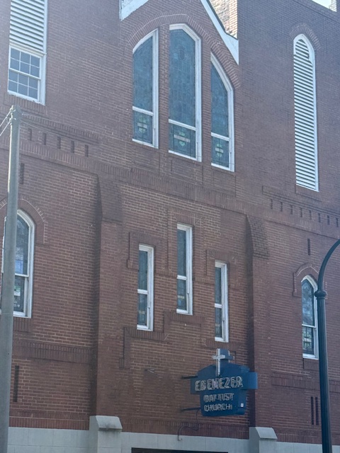The folks at Ebenezer Baptist Church, Martin Luther King Jr.’s church, welcome us and are amazed that we have come so far to worship with them. They direct us with smiles, and I fill out paperwork for our small group. The ambassadors, wearing badges, greet us and turn us over to ushers who seat us. We sit about 1/3 of the way in. We are introduced and stand in the welcoming part of the service. I open a hymnal and learn it is given by Rev. Scott, who is associated in my mind with the King family.