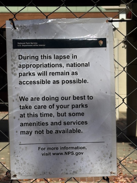 We traveled about another 15 minutes and discovered, as warned, that the visitor center access road was blocked by county construction. We then parked in overflow and walked to the center. I paid the $5 parking fee using a QR code while we walked. It went better when I used the correct credit card (not AMEX) and applied the correct security code! I kept using the code from my bank card and not my Visa.