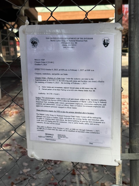 But there was trouble. I walked over to the National Park section to find no one working, but everything was fenced off, supposedly unsafe, and under construction. There is no construction work visible. Just another excuse to erase uncomfortable history. I walked to the house where MLK was born; it, too, was fenced and boarded up, with signs and write-ups about the closing and two years of construction planned. All on order of the Secretary of the Interior. I was angry now, and it was a reminder of the worst of politics.