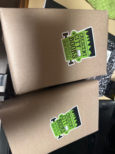 Some carefully wrapped used books from Crescent City Books. They remember me when I am there. I always find something I need shipped home.