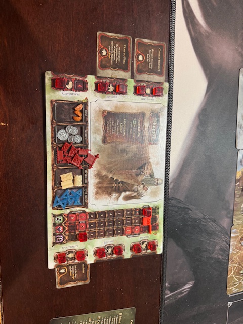 Richard has the game board set back to where we left it a few weeks ago. The board game has a ‘save’ process. I remember much of the storyline, and we were heading west to continue the story. James and Richard, who have likely played a dozen games since, do not remember. I have been a DM for Dungeons & Dragons since the 1980s, and remembering stories is part of my job. We start, and Richard cannot help but harvest resources and experience. James’ character is not combat-centric, mine is a mix, and Richard’s combat-focused, which means James often takes more damage. We have a close call as a monster tracks and attacks us, and it takes a few tries to defeat it. It then resets and will reappear in three turns. We stop it faster with a bit of luck. James’ character is the only healer, and he often helps that way.