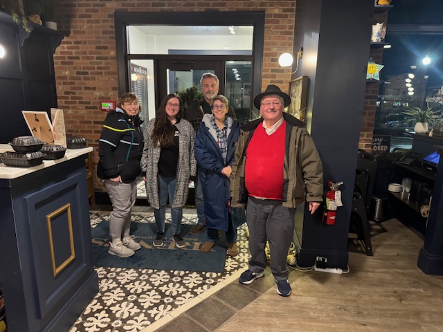 Barb C (Susie’s sister), Emma (daughter), and Gordon (husband) shared with Deborah and me their experiences in Ireland and other travels. We covered some of our experiences in Iceland, our big trip this year, and then we talked about their trip to Italy some time ago. They visited the crash site of Ben’s WW2 plane (Barb C’s and Susie’s father). Gordon covered what we know about the crash and how the plane did not release its bomb (destroying the village) and instead crashed with the bombs unexploded in the mountain, killing the pilot and co-pilot. The town had a monument to the plane and its crew (including Ben) that refused to bomb them. They met people who witnessed the plane crash, visited the site, and Emma found bits of the plane. Gordon is still in contact with folks from the village.