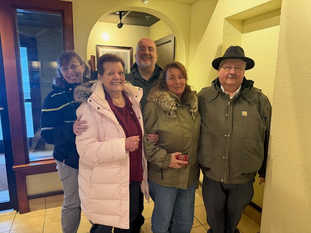 I texted Linda with updates and learned that Jessie, Meg, and Linda are joining us, and they decided to pick up Mom Wild at Haslette Point Senior Living, as we are running slower. We arrive actually at the planned time of noon, having started early. We meet everyone at The Olive Garden, a mile from the facility.