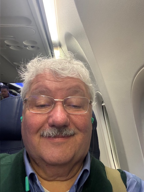 As I sat down to put on my shoes, I saw that Delta Airlines offered me a replacement flight, as my flight was now an hour delayed and my connection to Portland would not work. I picked a new flight through Salt Lake City, updated Joan S and others, and then found my gate. I was boarding soon. Checked that my suitcase was rerouted on the Delta app, yup. Got two pastries at Starbucks and drank about 1/2 a coffee, but tossed it as I boarded, as my hands were not free to carry it, my bag, and my coat.