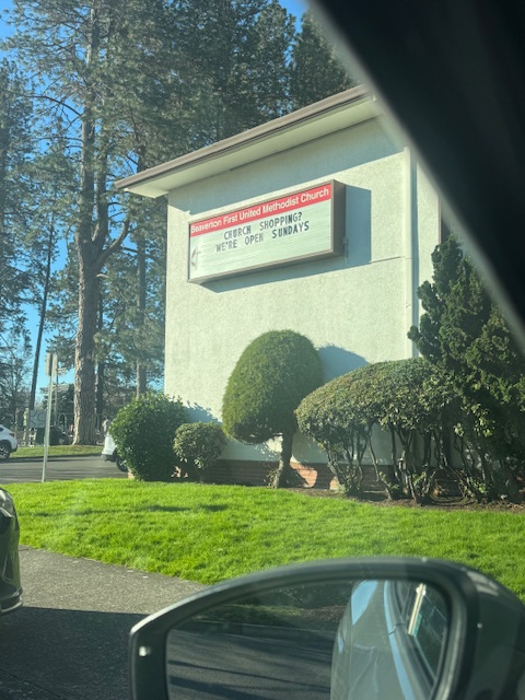 Paul, an obvious street person with pants falling off and torn, came to our church service at First United Methodist Church in Beaverton. I was ushering, and Paul was a regular. He was sober enough (not always true; he had slept in a pew before), but his clothing was tattered. I had only coffee and donut holes (I am thinking about bringing sandwiches to give out), but also made sure he and others are welcome. I try not to be a ‘cop’ when I usher, but sometimes I still, with my tie, look the part. And I follow folks to ensure they are safe.