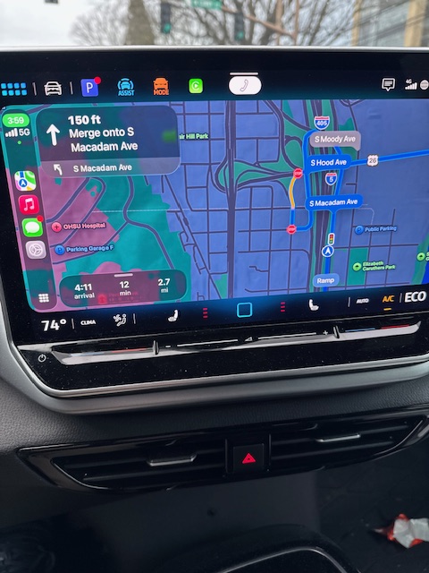 Aside: I forgot to include this picture of Nav in Portland. This is the usual way to move from Highway 5 to Powell!