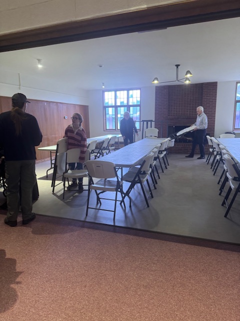 Clean up was hard, but folks stepped up. Dondrea, I found doing dishes; next time, we will need a cleanup plan and help with it. Mel washed the floor in the Fireside Room (no longer carpet), where we held lunch in the newly refreshed space. It worked marvelously to use it. Another delight for me: using our refreshed space.