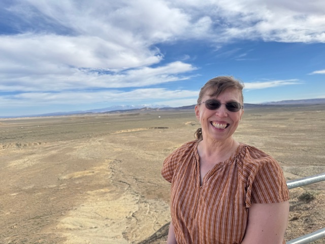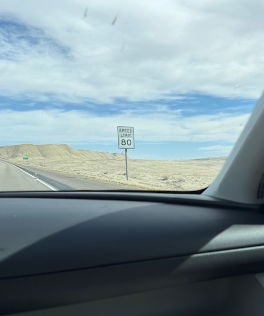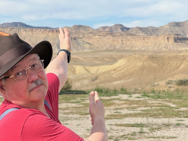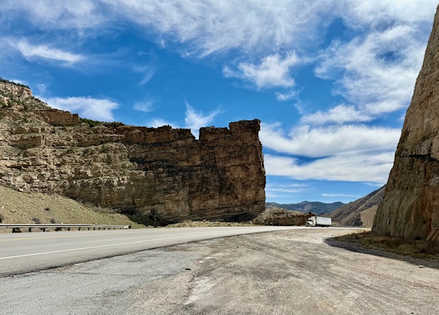The mountains changed from the Rockies that start in SLC to more worn and colorful structures. We were soon driving a few levels above the salt and sand of an ancient sea that was here when North America was part of the supercontinent, Pangea. We decided to mostly stop taking pictures and just enjoy the sights. It was a fantastic voyage to drive across Utah. We stopped in Price to get Wendy’s, only to discover the place was being rebuilt from the ground up. Deborah really wanted a potato. Arby’s was next on the sign. I bet Deborah a dollar (and lost) that it was closed too. It was open and clean. We had some sandwiches and then got back on the road.