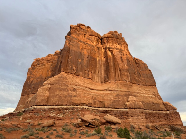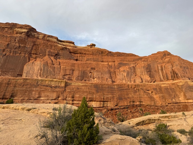 Next, we got back in the car and tried out Arches National Park. It was after 6, and the sun was setting, but we might make the panoramic view in time. We missed the sunset as we were stopping and looking at all the incredible shapes. We did see a few arches. It was great, and we will be back on Sunday morning to catch it in the morning light. The drive was on cliff-side two-lane roads, and we wanted to be back before dark. It is very dark here, and this is an official night sky area (though tonight it is cloudy).