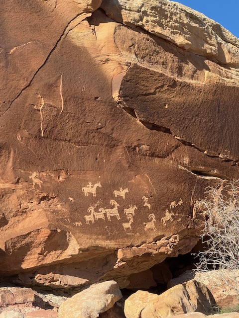 We started after 4 back to the park, after spending some time resting at the hotel. We drove far into the park again and just took the two-to three-mile trail to Delicate Arch. It had a short branch that led to a petroglyph, and we wanted to see it. We were starting to feel the 5 miles of walking (mostly up and down). It was only a holy place, we felt, and it was marvelous to see them. We also saw that the trek was not crushed stone but paved. Hmmm.