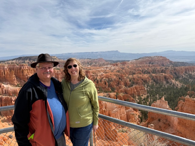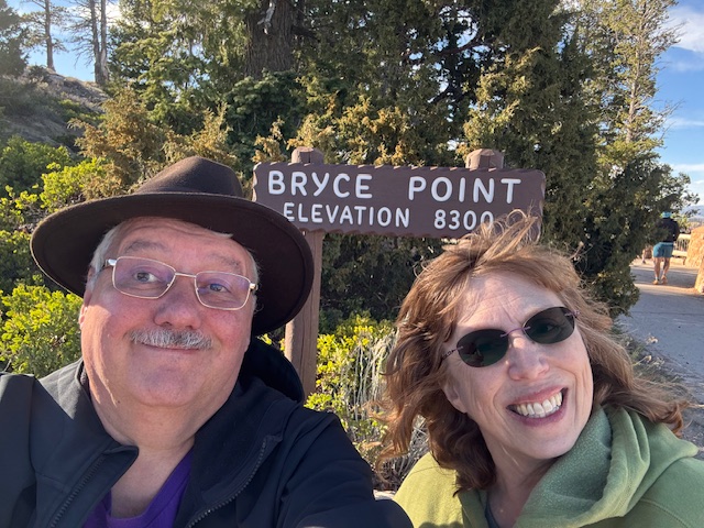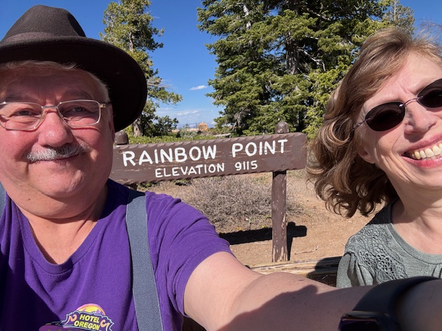 Deborah and I have endless photos of pink rocks (and some other colors) and us standing at various overlooks. Please excuse us if we are enthused by rocks and the amazing views of Bryce Canyon National Park.