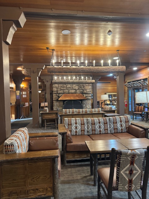 Next, we headed to the Lodge. Utah’s National Park Lonely Planet Guide was excellent (Deborah found it the night before in the General Store at Ruby’s Inn), and it suggested the Lodge parking to see the Sunset and Sunrise points, but we covered them in the morning. Instead, we got a table by the window and had a lovely dinner and drinks in the park for way too much money (But Ruby’s and other places have been expensive), and at least we got to eat in one of the historic Great Parks Lodge.