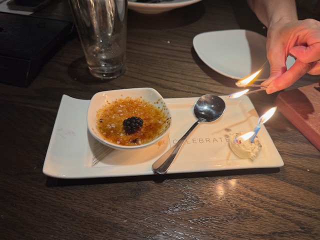 Linda and Jesse (her husband) later met me for dinner (number two) at Cooper and Vinyard. We shared a bottle of wine, and the food was excellent. I had my birthday dessert wtih no singing.