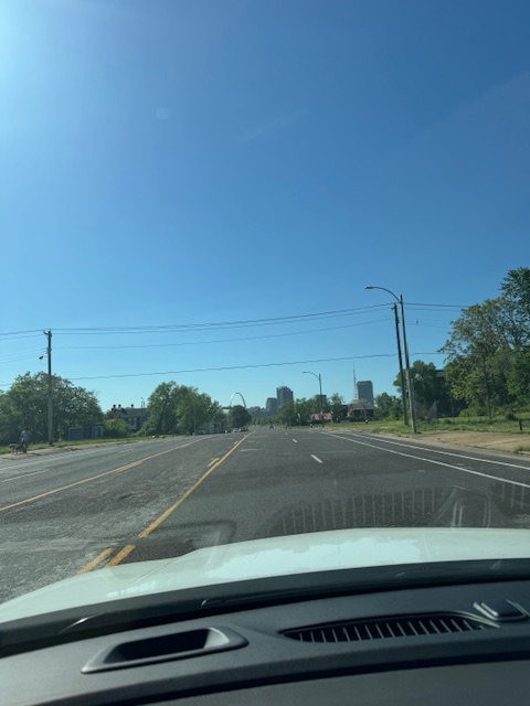 I took the car back to the airport and remembered that I had to gas it up. I then drove a large circle in St. Louis because the number of gas stations and other helpful places is limited in the area I was in. It is the Rust Belt in its final, failing form — no services, not even a 7-Eleven. Finally found a gas station using Nav and driving a few miles, added just a gallon and a half, and then drove again in a strange circle, touring the ruins (with a few bright spots of hope and renewal). I then found my way, using Nav, to the highway and drove thirty minutes to the general location of the rental car return. The signs stopped, and I found myself driving through strip mall-lined roads, and the Nav was getting quite confused. But Budget (I looked up who I was renting from this time before heading there), and the other car places had large signs, and soon I found where I needed to be. It was a strange trip with strange shifting roads. Note to travelers: St. Louis rental car return is f**ked up beyond recognition.|