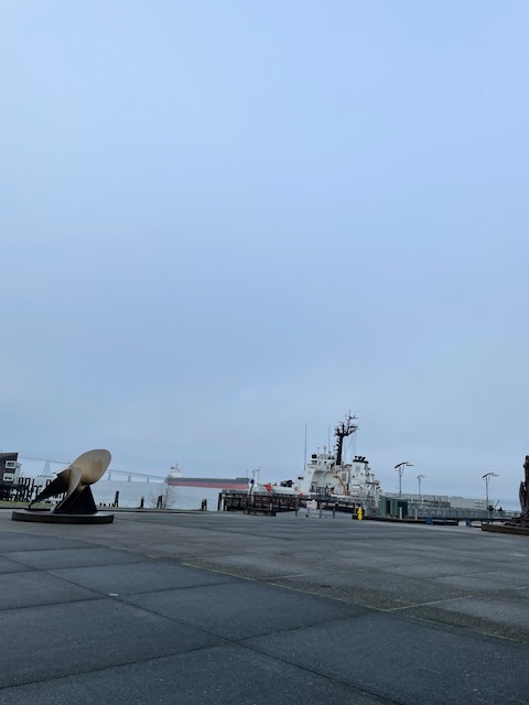 I arrived at the Columbia Maritime Museum and purchased an annual membership as I am rushed today and would like to be back. As I entered the museum, I saw two active (not museum ships) tied up to the pier and a large ship. I also headed up the Columbia River, having managed The Bar today. The crossing between the Columbia River and the Pacific Ocean, The Bar, can be dangerous, and I am not sure I would want to do it with twelve-foot seas!