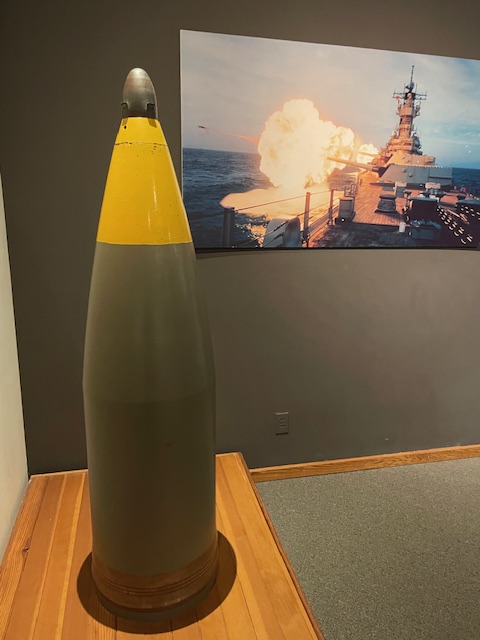 The bridge of a WW2 Fletcher destroyer is in the WW2 display. Astoria was the name of three cruisers, and the display covers all of them. USS Astoria (CA-34) was lost in the Battle of Savo Island to gunfire–there is a chart showing the damage. It was fun to walk onto a Fletcher destroyer’s bridge.