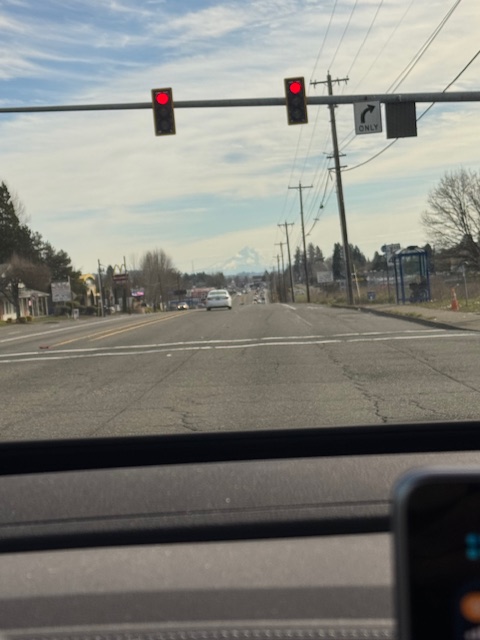 The blog was over 1000 words and was not done until the last moment to not be late for church, but my close attention to scrubbing in the shower and the applications of various creams had me running over. I boarded Air VW the Gray and rushed to Beaverton. Well, I would have rushed if I could. Traffic was slow even on a Sunday. It was sunny, and the view of the mountains was distracting (I even took a picture), and I arrived only a few minutes late.