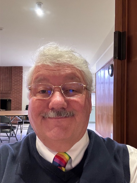 I arrive at church after 10:30 (services start at 11), and Dan G is here today, and he does the ushering with me, now assisting. I see the tables are not out; roll them out and, with Z’s and Mark G’s help, get three round tables with chairs added to the fireside area.