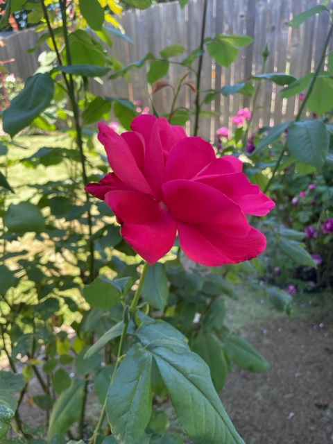 I am working the 4PM-12AM shift Saturday, but for Friday, I was still on the 8AM-4PM shift. As it was Friday, it was a work-from-home day, and I got to sleep until 7:30AM. It was a gray Oregon drizzle day (rain was not in the forecast, and it surprised us all), and the temperature never climbed into the 70sF (21C), and of us, long-term residents rejoiced. Pollen is washed from our skies; we don’t need to water anything and are not supposed to have sunshine in June anyway. Seeing the mist dripping off my rose’s leaves just looks so usual; it made me smile.