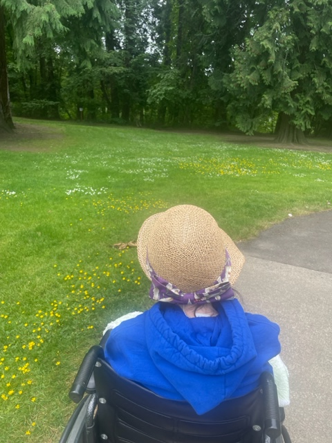 We had a break while the software engineering wanted to work on the problem without the Zoom meeting (it can be hard to focus when everyone is watching and asking questions), and we took Air Volvo to see Susie at the hummingbird house in Portland (Tigard) at Allegiance Senior Care LLC, 9925 SW 82nd. Ave. Portland (Tigard), OR 97223; phone (503) 246-4116. The traffic for Friday was not terrible until I was near Susie’s place. Tigard and Beaverton are repaving Hall Boulevard, and I was stuck in lane switching flag people. I usually complain about construction, but this part of Hall Boulevard really needs to be repaved as it has been torn up a few times and not put back better over the past ten years.