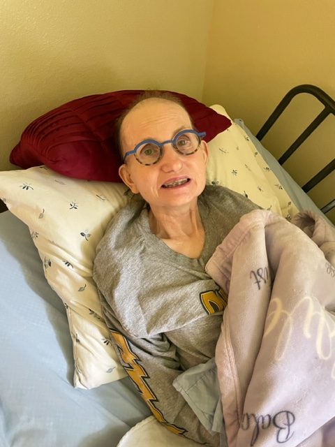 Susie was delighted to have more flowers and a visitor, but she was disappointed that I would stay for only a short time. We could not afford me to catch her cold. Mask on the whole time, and no close contact. Like Covid-19 all over again!