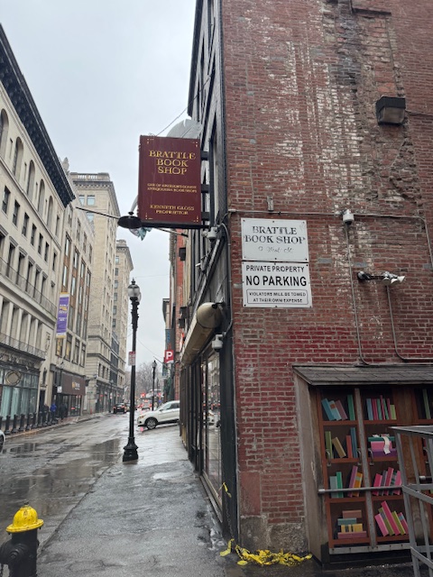 I located another used bookstore, Brattle Book Shop, and decided to endure the cold again. I stopped at a coffee place (it was one of the Christian-focused The Well Coffee Houses, which I usually avoid, but I was cold) before I headed out. Slighly drier, I walked six or more blocks to the theater area outside of the Finance District, where I was staying at the Club Quarters Hotel.