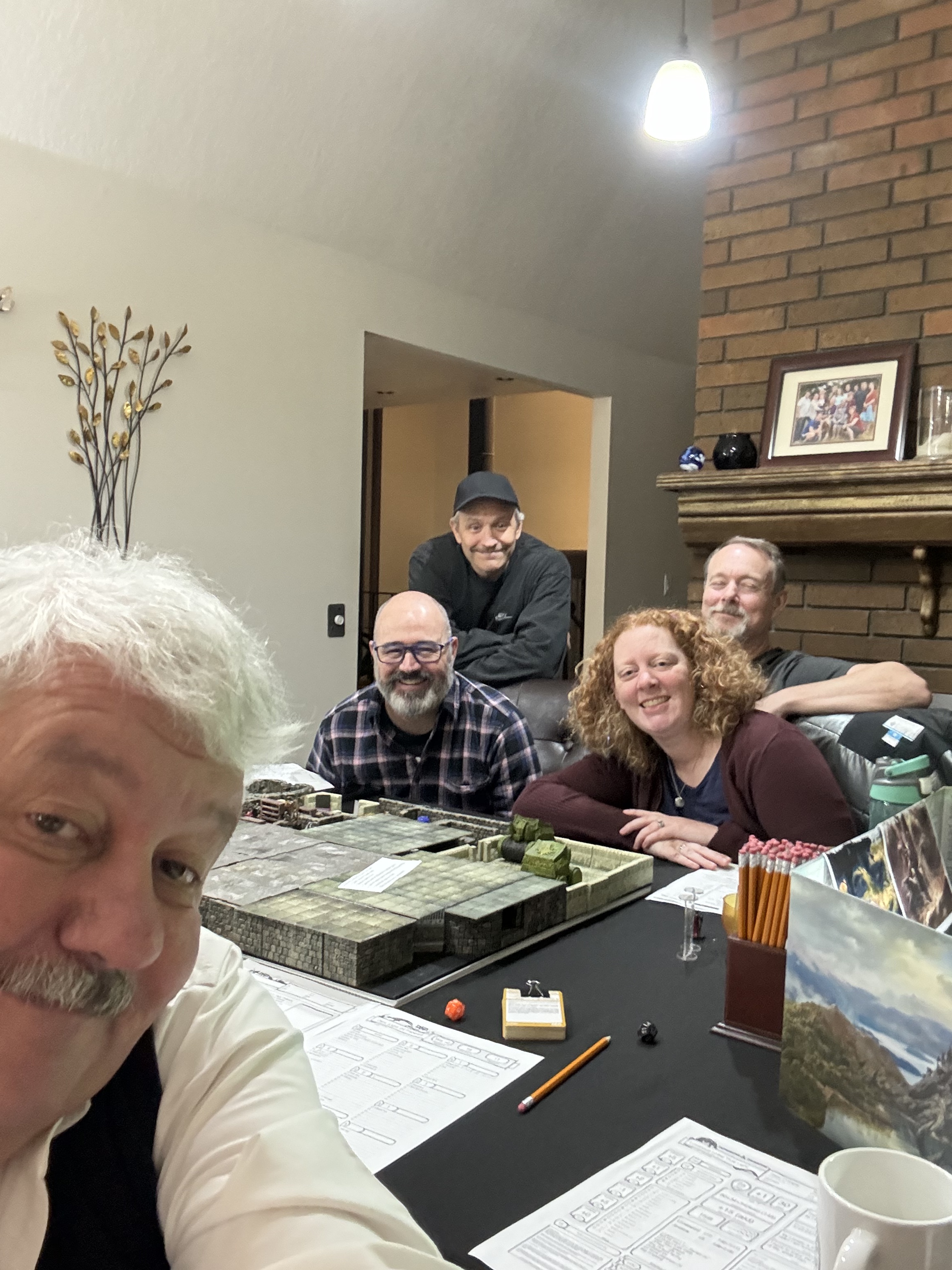 Tuesday morning started with me raising my iPhone alarm at around 8. I had a game at Richard’s at 9:30, a new weekly game on Tuesday morning (though I will miss the next one). James, a retired doctor I had not seen for more than a year, had acquired a copy of Mansion of Madness, Second Edition, with the figures painted and organizers. This version uses an app to control the game and is best on an iPad, and it is far better than the terrible slog that was the first card-based version. I wanted to try it again; I tried it at a convention, and the game was not fun. I hoped it would be better.